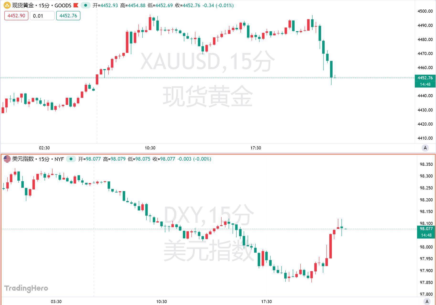 美国GDP数据公布后,现货黄金短线持续回落,收窄日内涨幅。美元指数反弹至日高附近。截止发稿,投资者减少了对美联储明年降息的押注,目前市场认为美联储在1月28日会议上降息的可能性仅约17%。